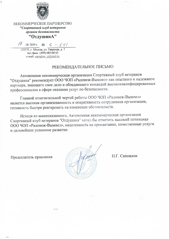 Частное охранное предприятие «Радонеж-Вымпел» оказывает широкий спектр охранных услуг, соответствующих законам и требованиям РФ. С полной уверенностью Вы можете доверить нам охрану имущества, груза или промышленного предприятия.